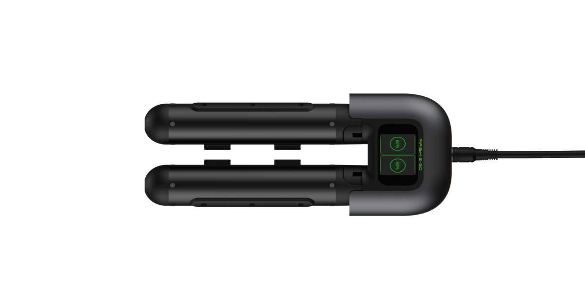 FIFISH E-GO showcases a dual battery system with hot-swappable technology, ensuring uninterrupted power without shutdowns. Quick 9-second replacement, individual battery accessories, and a portable intelligent charging system enhance efficiency and endurance.