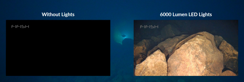 The FIFISH V6 EXPERT comes equipped with a pair of ultra-bright 6000 lumen LED lights alongside its 4K UHD camera, delivering brilliant, vivid, and vibrant images and footage within even the darkest spaces.