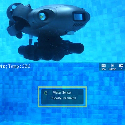 Integrated with the FIFISH APP, Measure the amount of light that is scattered by the suspended solids in water. Turbidity sensors measure the amount of light that is scattered by the suspended solids in water. As the amount of total suspended solids (TSS) in water increases, the water's turbidity level (and cloudiness or haziness) increases.